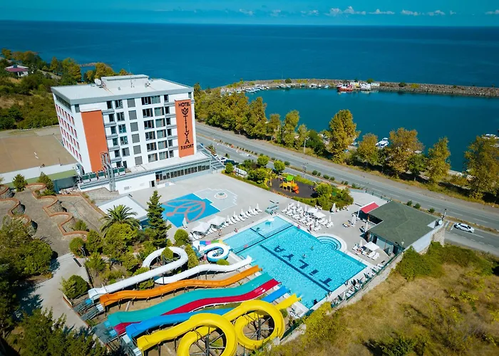 The 4-star Tilya Resort Hotel Trabzon is situated in a beach area of Trabzon, 4.5 km from Kirechane Cami and 10 minutes' drive from Belediye Camii. Guests can enjoy a Greek restaurant and an aqua park, a sundeck, and a play area at the hotel, located near a boat dock.